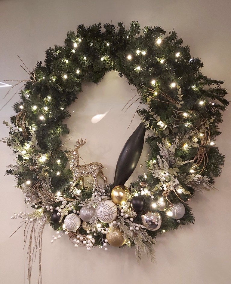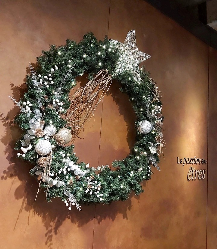 Couronne de vigne-étoiles & sapin enneigé