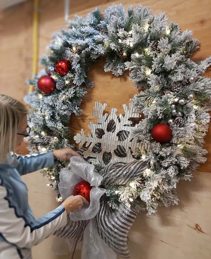 Couronne flocon de métal & boules rouges